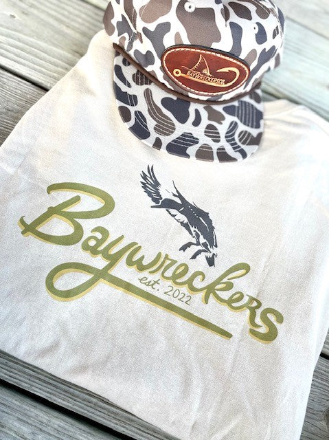 Our CUSTOM logo shirts are in! This awesome shirt features our original custom Baywrecker's duck logo on back and our custom duck foot logo on front!